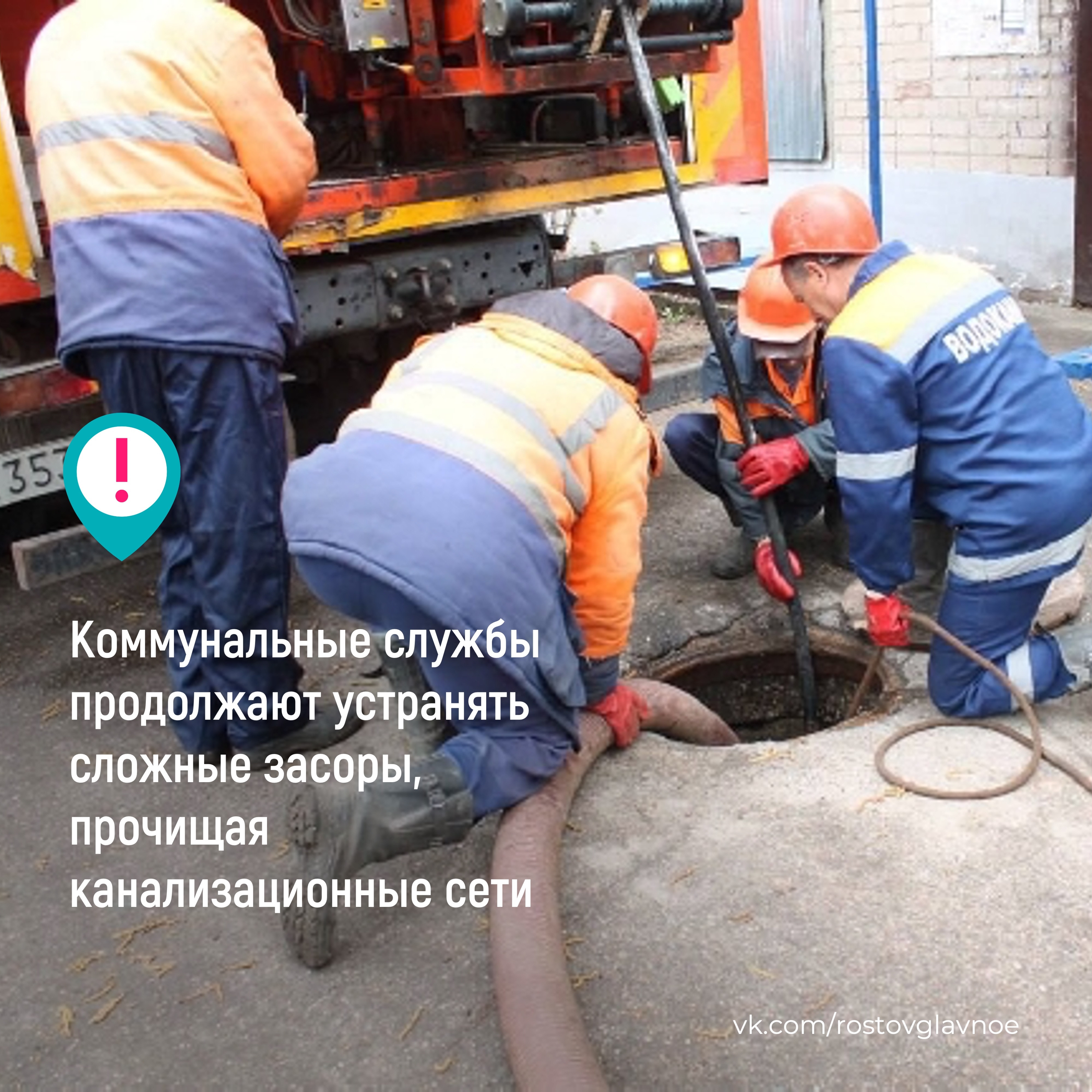 Коммунальные службы продолжают устранять сложные засоры, прочищая канализационные сети