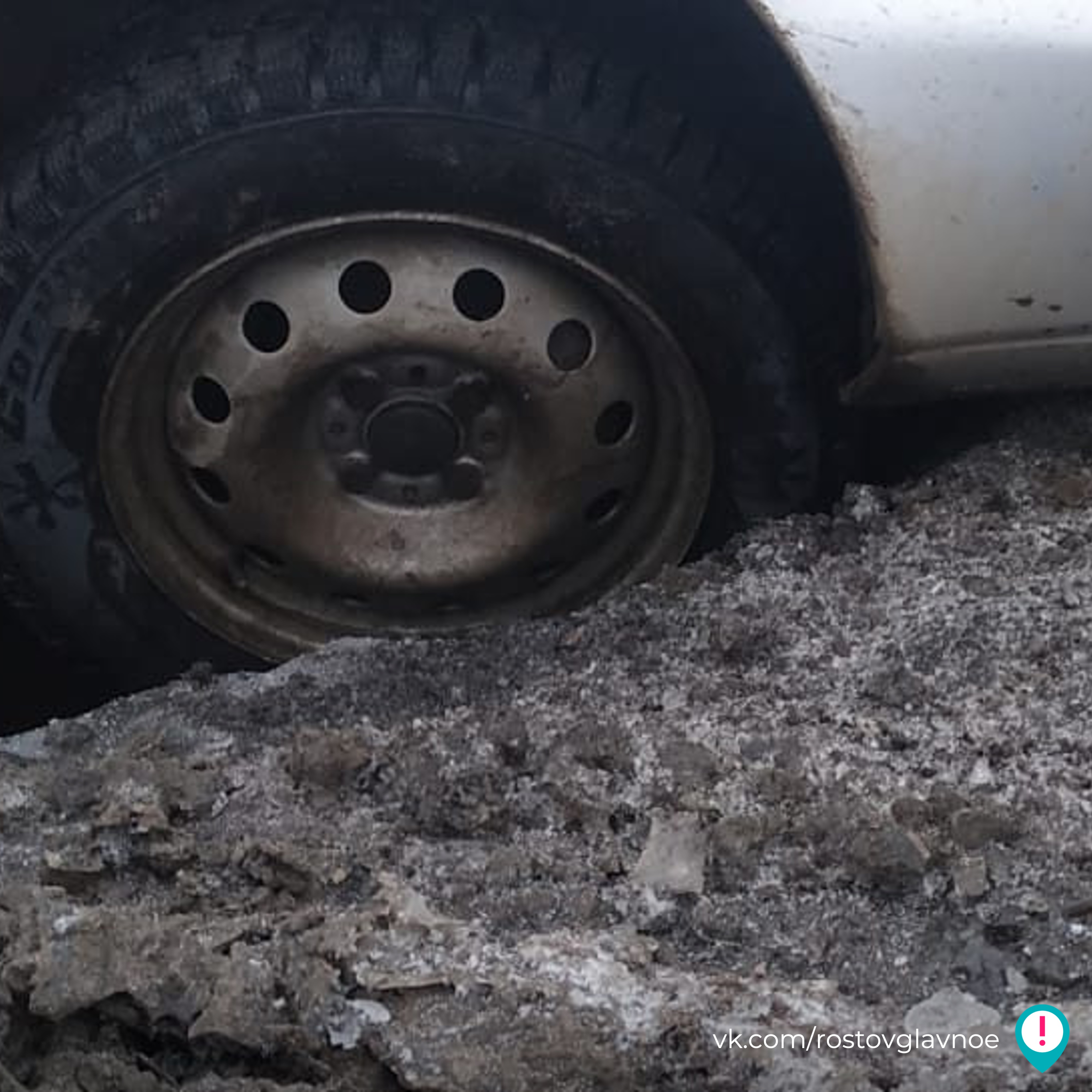 колесо машины провалилось в яму