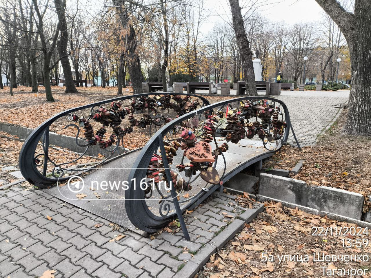 Таганрожец пожаловался на большое количество свадебных замков на мостике в сквере Петра I