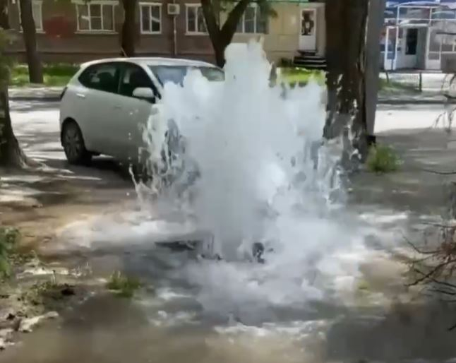 На улице Таганрога из-под земли бьют потоки воды