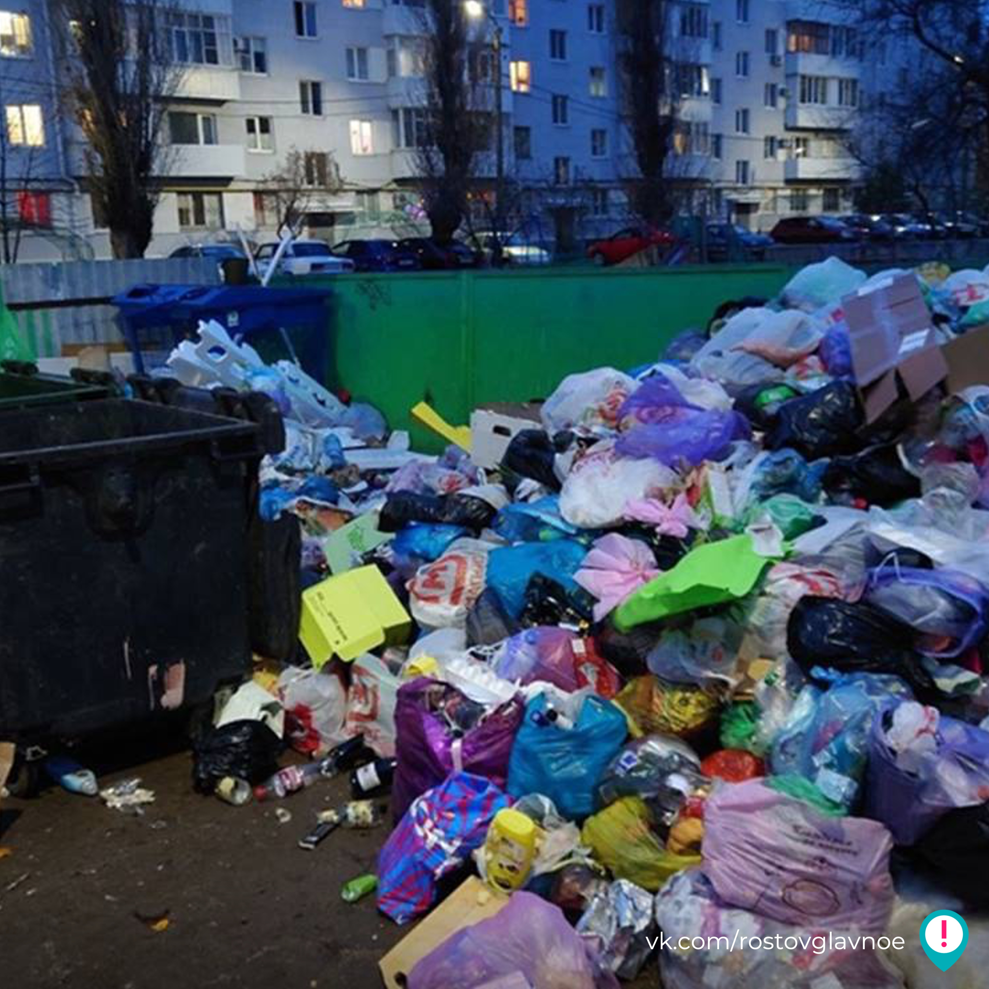 В Волгодонске горы мусора лежат рядом с пустыми баками на контейнерной площадке во дворе Ленина, 71