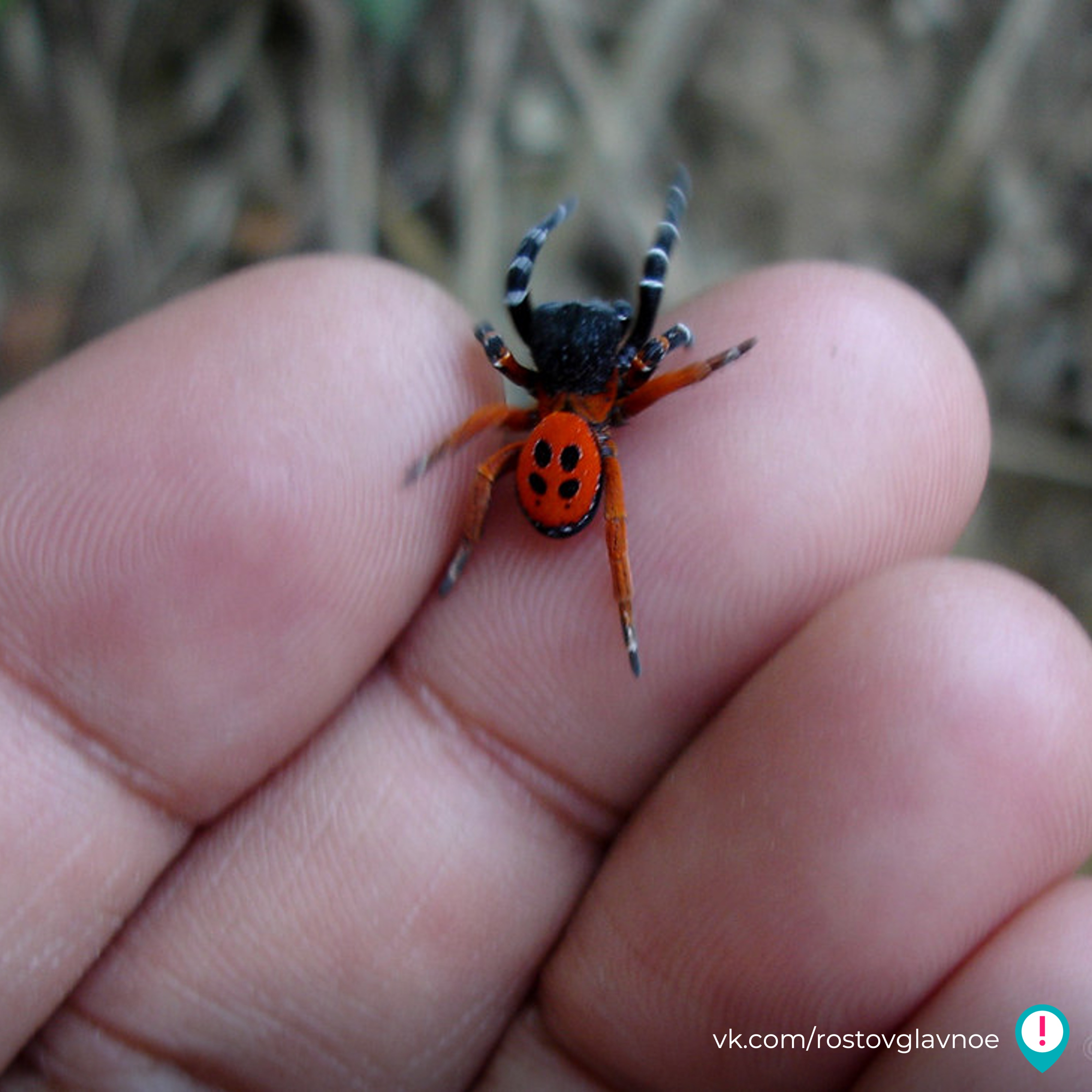 Волгодонцы встретили в парке «Дружба» опасного красного паука, чей укус вызывает паралич